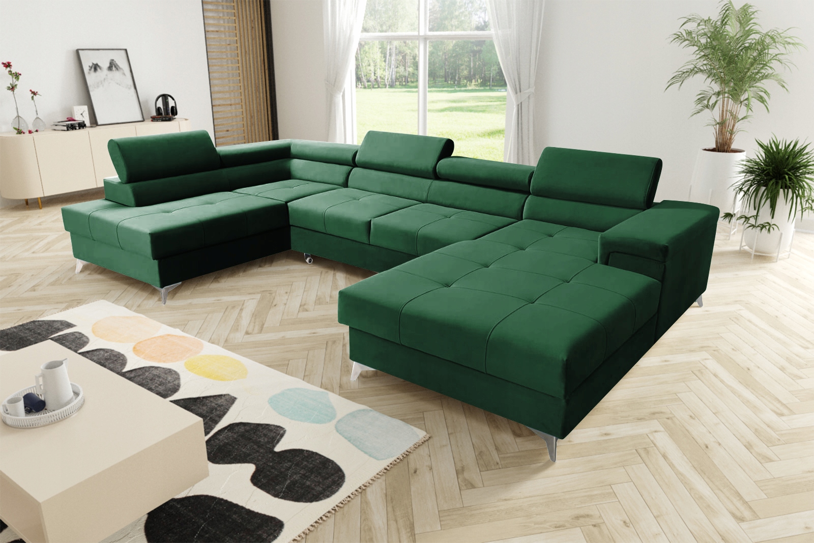 Solidny stelaż z drewna i płyty wiórowej oraz sprężyny faliste, wsparte wysokiej jakości pianką, gwarantują trwałość, która przetrwa próbę czasu. Regulowane zagłówki zapewniają wyjątkowy komfort użytkowania. Wybór tkaniny MONOLITH to gwarancja wodoodporności, czyniąc narożnik niezwykle odpornym na wszelkie wyzwania codzienności, zachowując jednocześnie swój niepowtarzalny wygląd na lata.