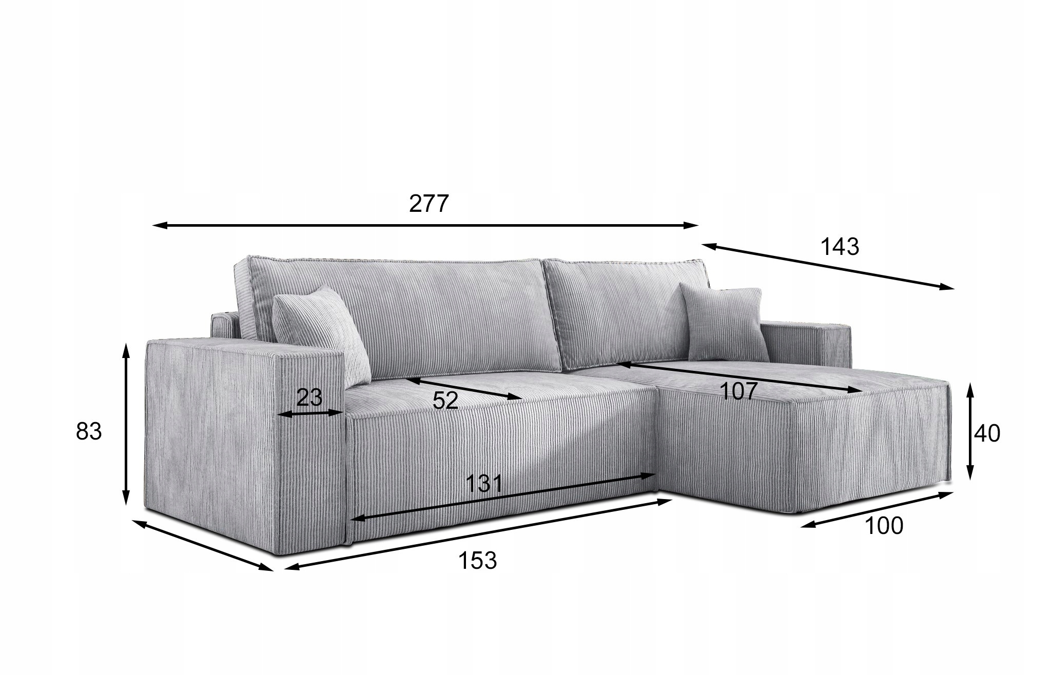277 cm (szer.) x 143 cm (gł.) x 83 cm (wys.)