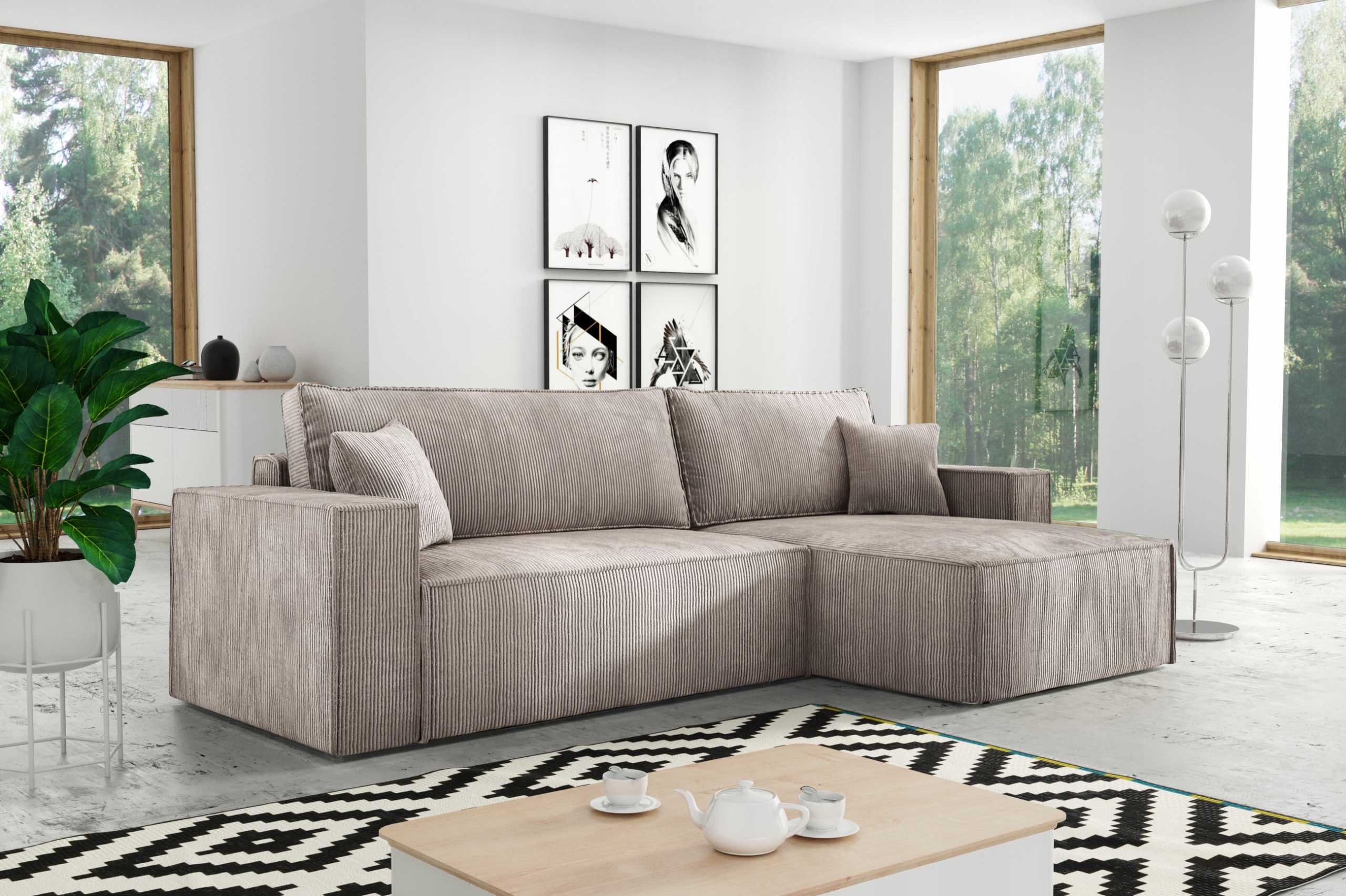 Wyjątkowy narożnik wykonany z mięsistego, grubego sztruksu, który w swej istocie kryje nie tylko najwyższą jakość wykonania, ale również troskę o detale, gwarantując trwałość i pełną satysfakcję przez długie lata użytkowania.