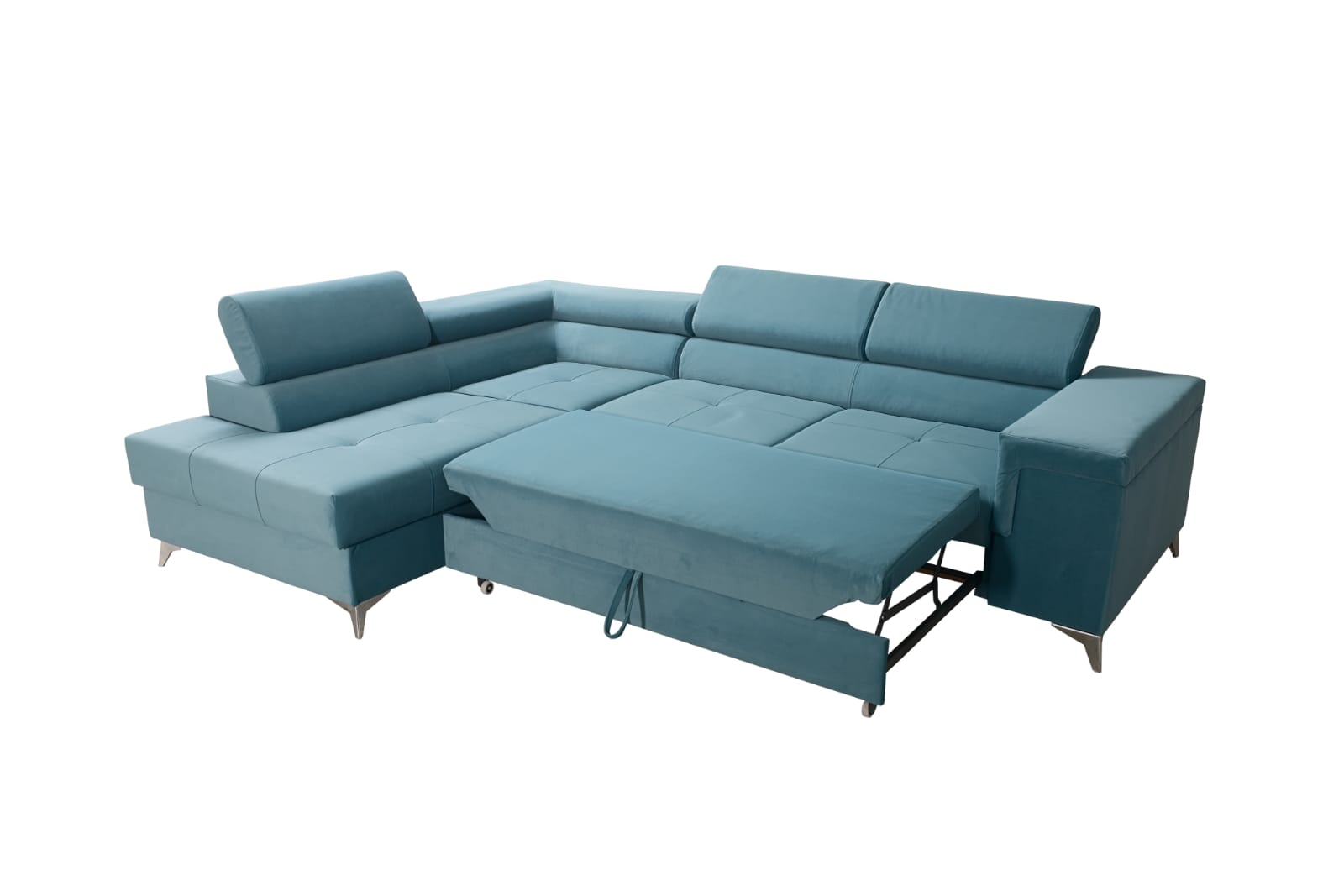 Narożnik jest z funkcją spania, po rozłożeniu ma bardzo duże wymiary, dzięki temu powierzchnia spania daje jakość dobrego snu. Mechanizm jest bardzo prosty i nie wymaga dużego wysiłku przy rozkładaniu.