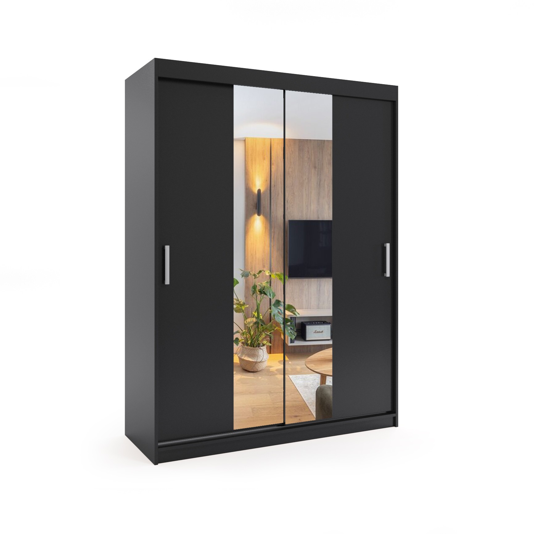 Szafa przesuwna dwudrzwiowa – PARIS PREMIUM Czarna 110 x 205 cm, 16 mm