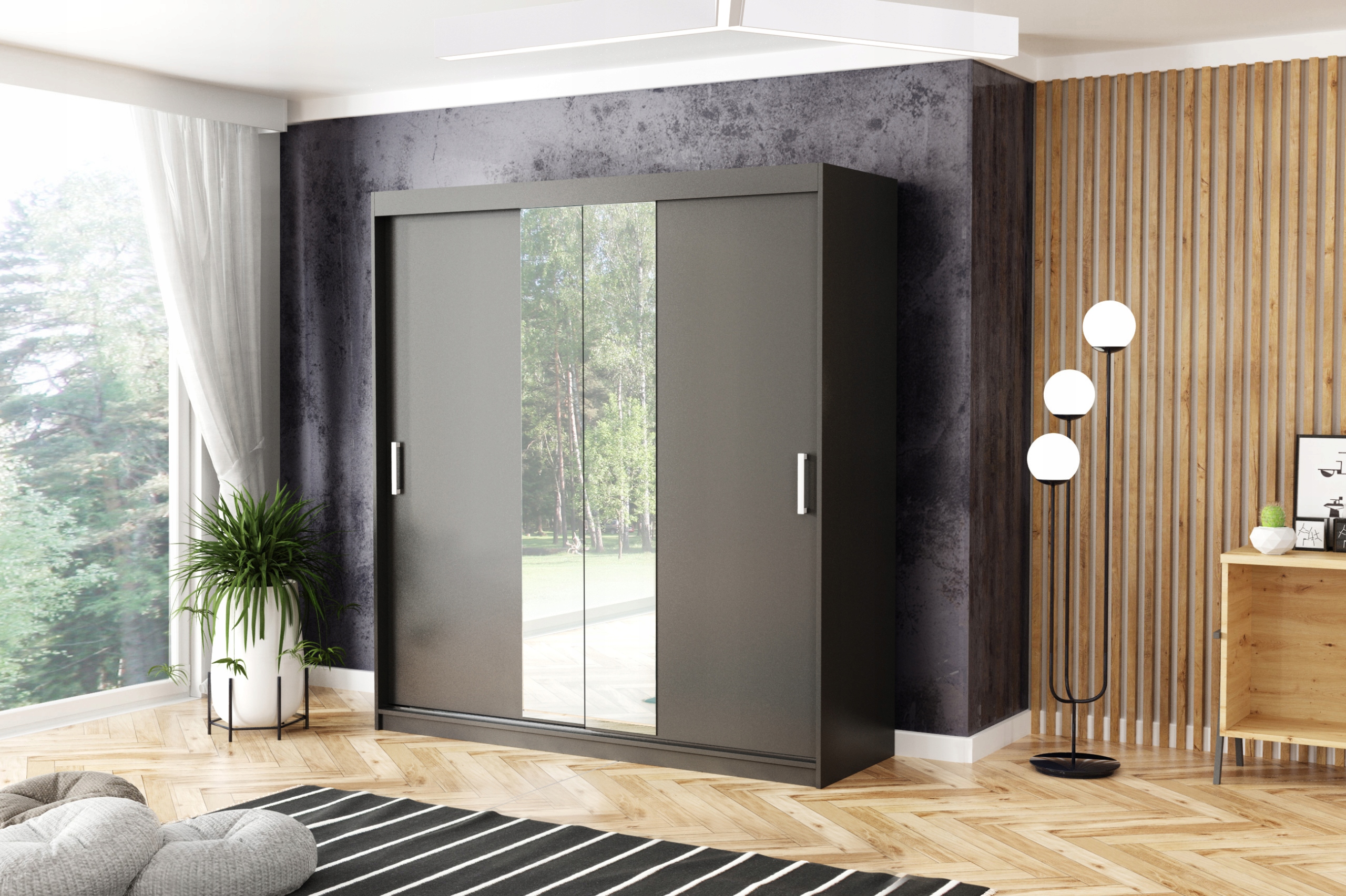 Szafa przesuwna dwudrzwiowa – PARIS PREMIUM Czarna 180 x 205 cm, 16 mm