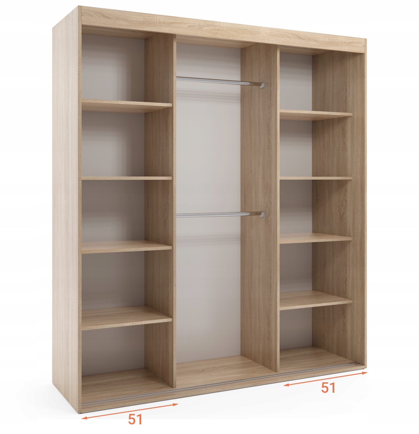Możliwe do wykonania w szafie dwudrzwiowej o szerokości 180-200 cm oraz szafie trzydrzwiowej o szerokości 180-250 cm.