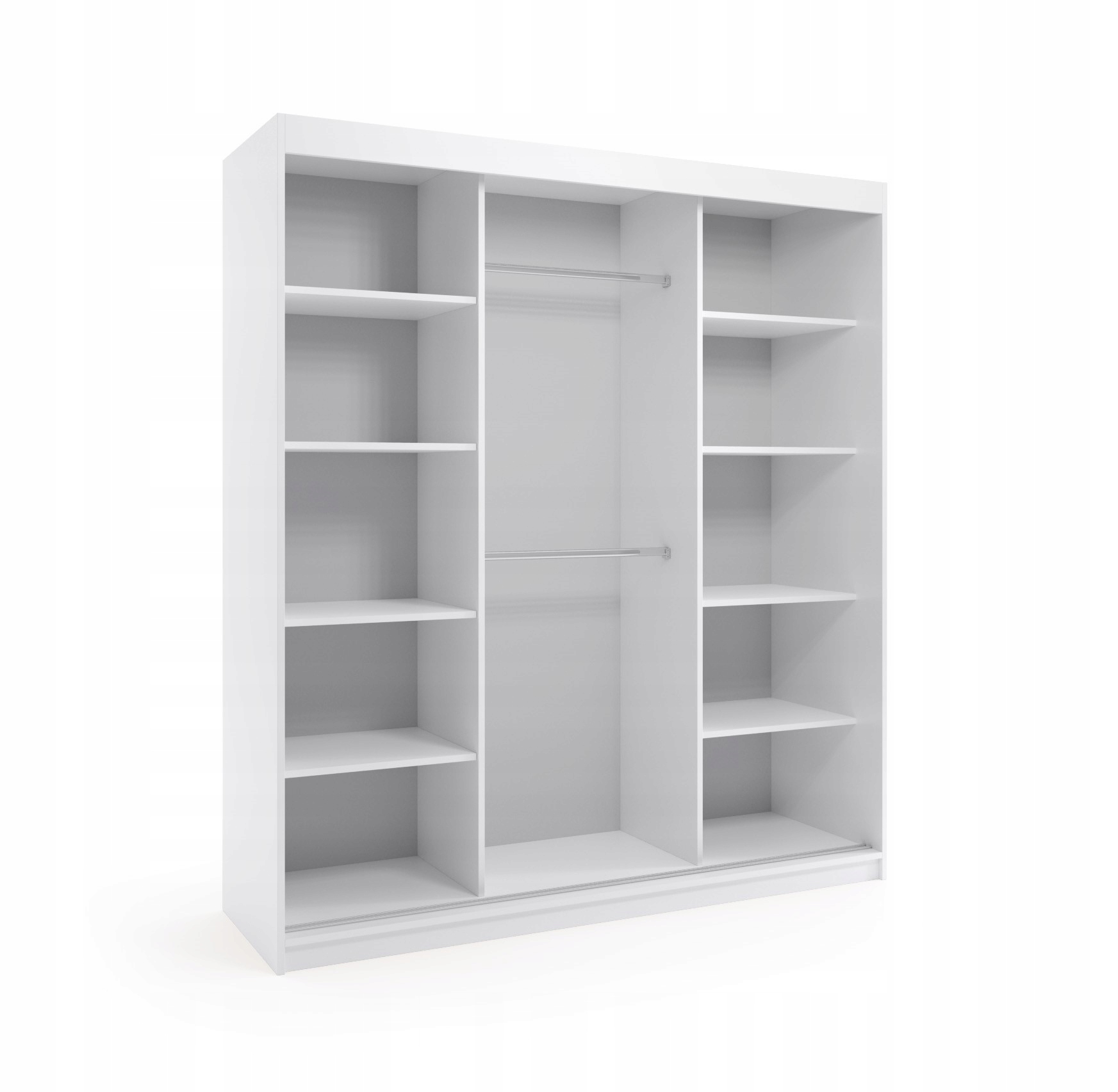 Szafa przesuwna trzydrzwiowa – MOLI Biały + Dąb Sonoma 200 x 205 cm, 16 mm