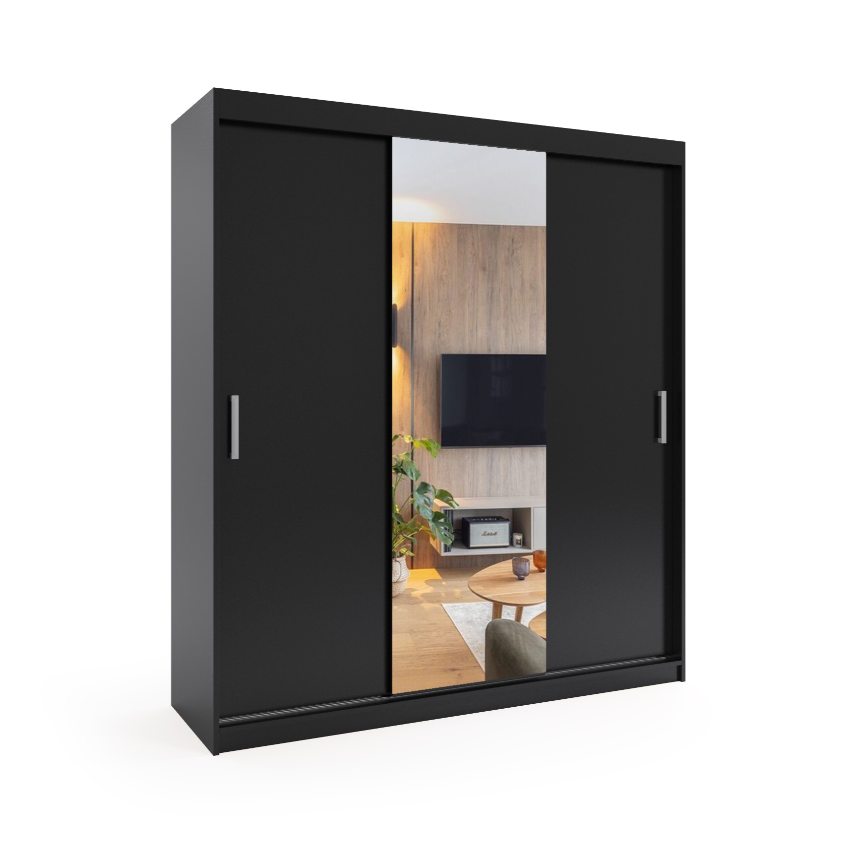 Szafa przesuwna trzydrzwiowa – MOLI Czarna 240 x 205 cm, 16 mm