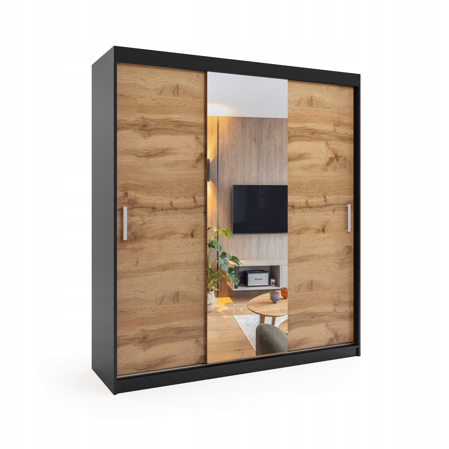 Be the first to review “Szafa przesuwna trzydrzwiowa – MOLI Czarny + Dąb Wotan 220 x 205 cm, 16 mm”
