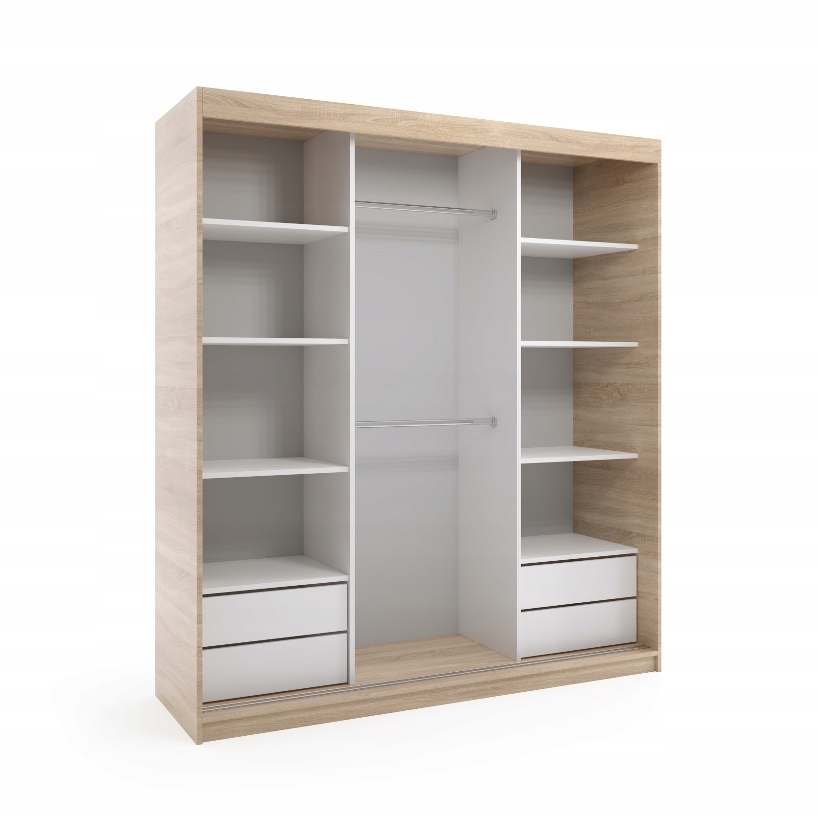 Szafa przesuwna trzydrzwiowa – MOLI Dąb Sonoma + Biały 190 x 205 cm, 16 mm