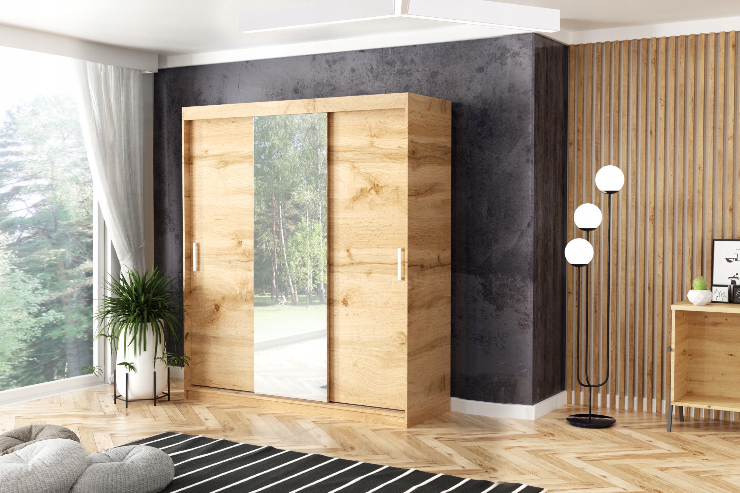 Szafa przesuwna trzydrzwiowa – MOLI Dąb Wotan 210 x 205 cm, 16 mm…