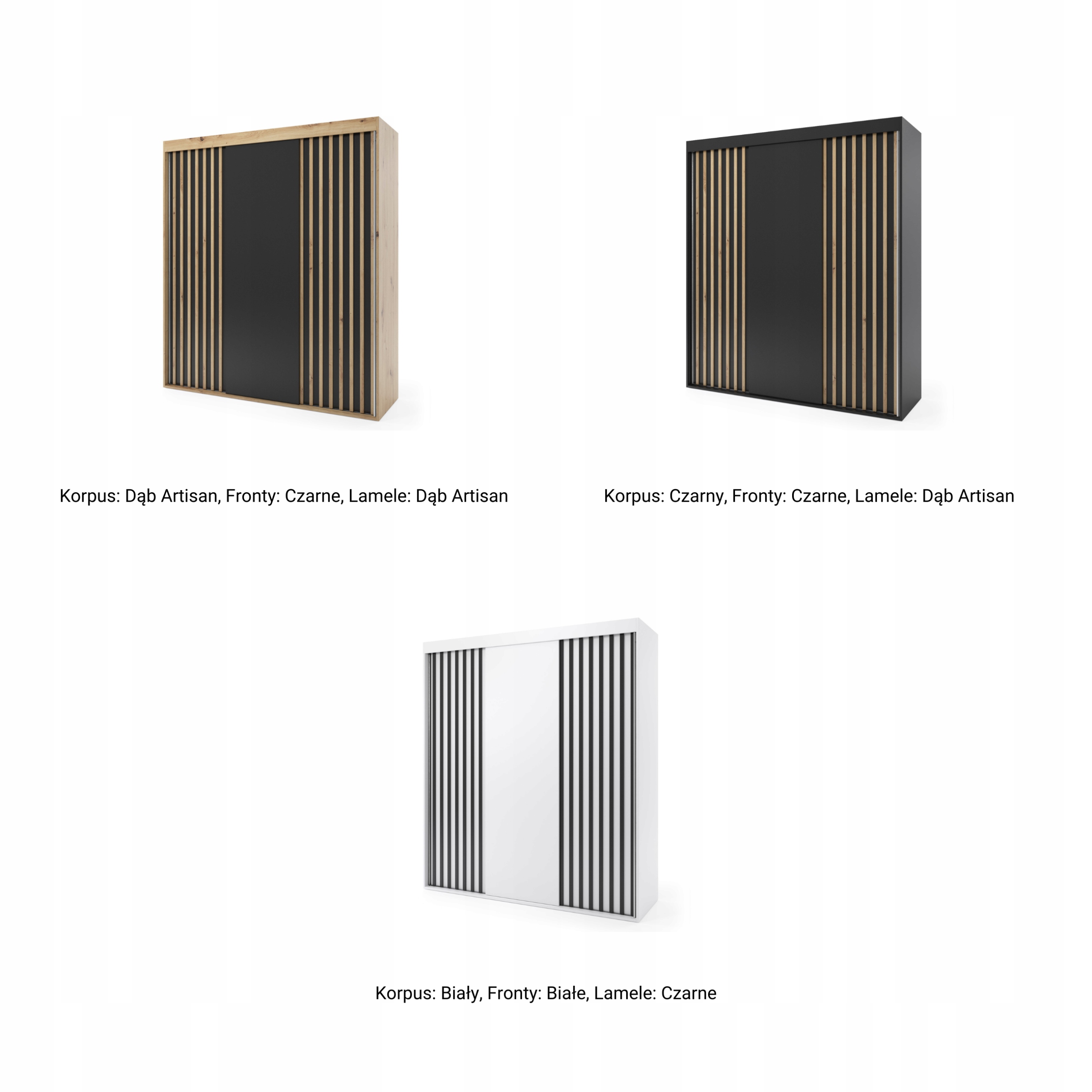 Szafa przesuwna trzydrzwiowa z lamelami – LAGOS 210 x 255 cm, 18 mm