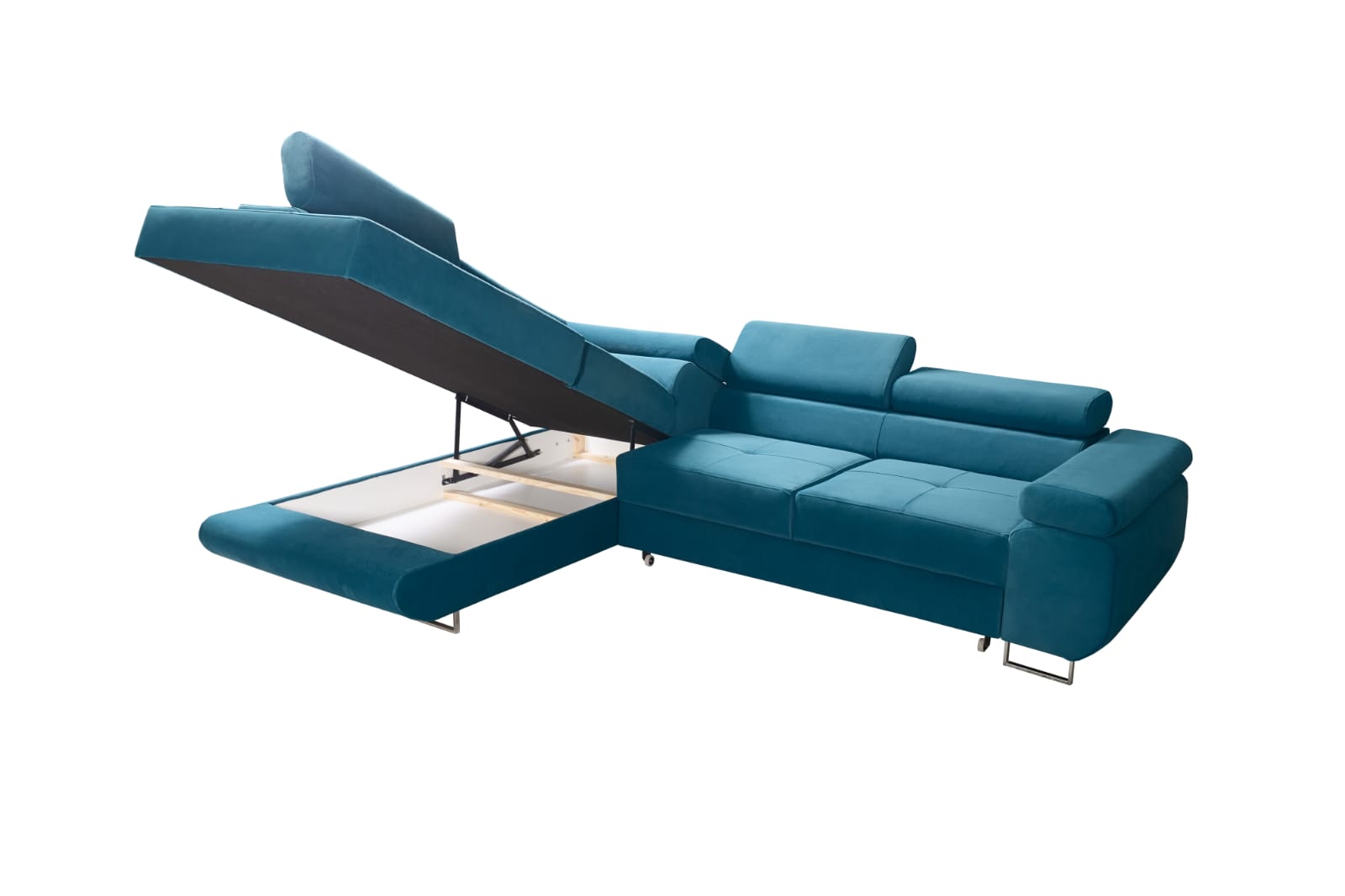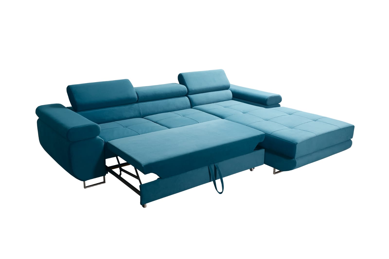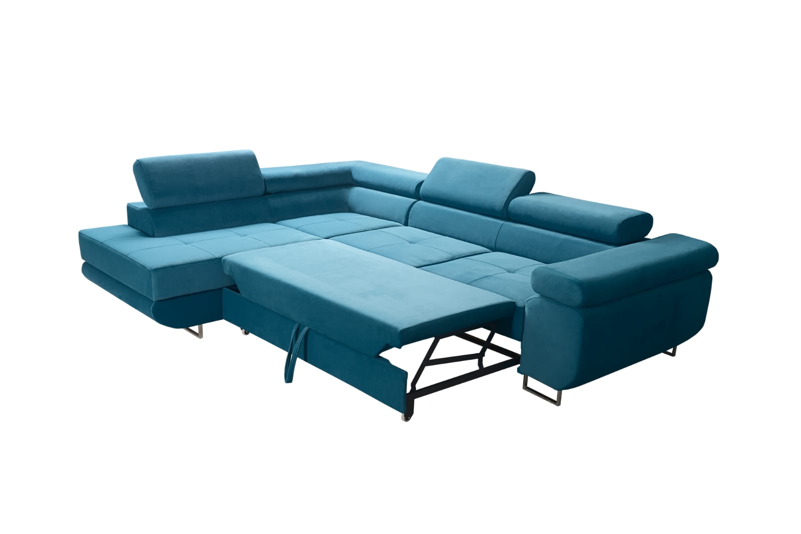Narożnik jest z funkcją spania, po rozłożeniu ma bardzo duże wymiary, dzięki temu powierzchnia spania daje jakość dobrego snu. Mechanizm jest bardzo prosty i nie wymaga dużego wysiłku przy rozkładaniu.